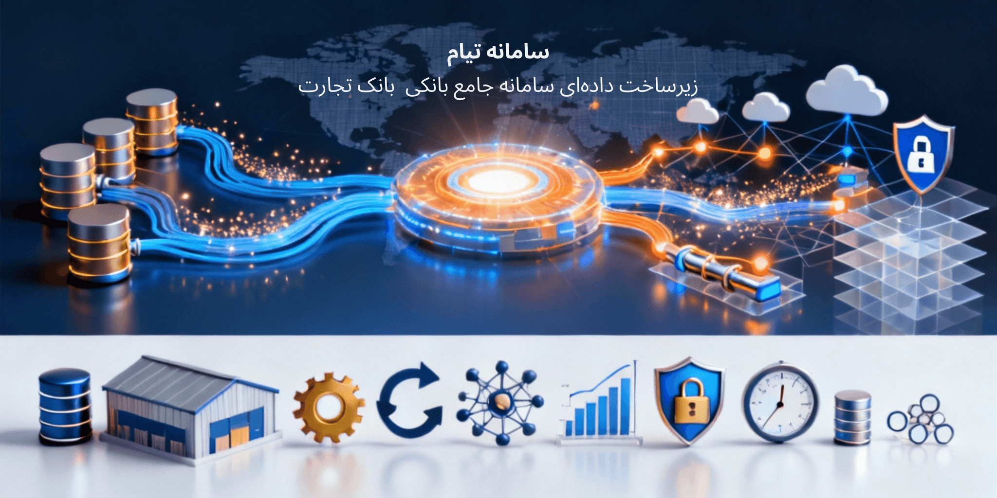 زیرساخت دادهای سامانه جامع بانکی بانک تجارت سامانه تیام بهعنوان زیرساخت دادهای بانک تجارت، وظیفه انتقال، تجمیع و ارائه دادههای حیاتی سامانه جامع بانکی (Core Banking) را بر عهده دارد. این سامانه با بهرهگیری از فناوریهای پیشرفته و معماری چندلایه، دادههای مشتریان، حسابها، تراکنشها و کارتها را پس از پاکسازی و استانداردسازی در قالبی ساختاریافته در اختیار سامانههای تحلیلی، نظارتی و عملیاتی قرار میدهد. هدف تیام، ایجاد یک بستر متمرکز و قابل اعتماد برای دسترسی سریع و امن به دادههای بانکی است.